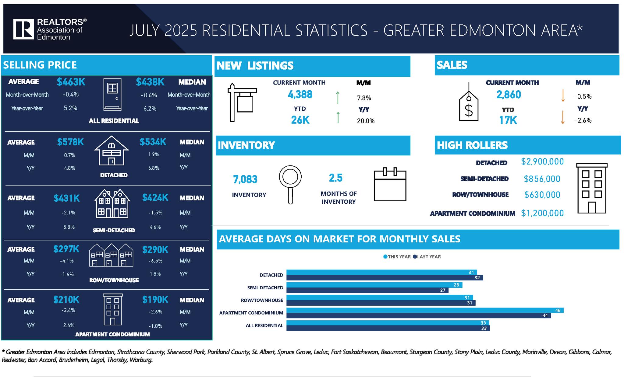 - New Listings: 4,388 in July (โ 7.8% MoM, โ 20.0% YoY)