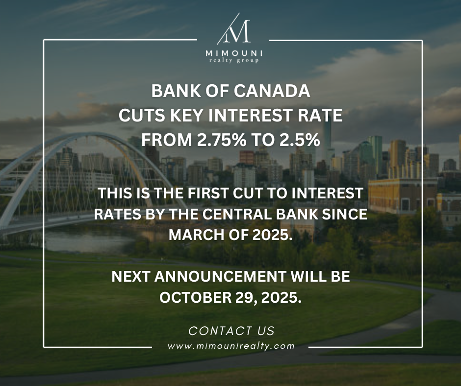 The Bank of Canada has announced its first interest rate cut since March 2025, lowering the key rate from 2.75% to 2.5%. This move signals a potential shift in the lending environment, offering some relief for homebuyers, homeowners, and investors after months of steady rates. A lower key rate can help improve affordability by reducing borrowing costs, making mortgages and loans more manageable for many Canadians. The next rate announcement is scheduled for October 29, 2025, and all eyes will be on whether the central bank continues to ease rates or holds steady moving into the fall market.